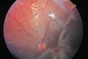 Quando a etiologia é retiniana existe tração da retina,devido a pontos de condensação do gel (vítreo) . Devido à modificação estrutural do gel,que ocorre após o deslocamento vítreo, algumas fibrilas se condensam ,formando então as famosas moscas volantes de vários aspectos e tamanhos.Algumas delas permanecem conectadas à superfície retiniana e nos deslocamentos oculares fazem com que a retina seja “repuxada”…ou seja,tracionada.A isso damos o nome de tração vítreo-retiniana.